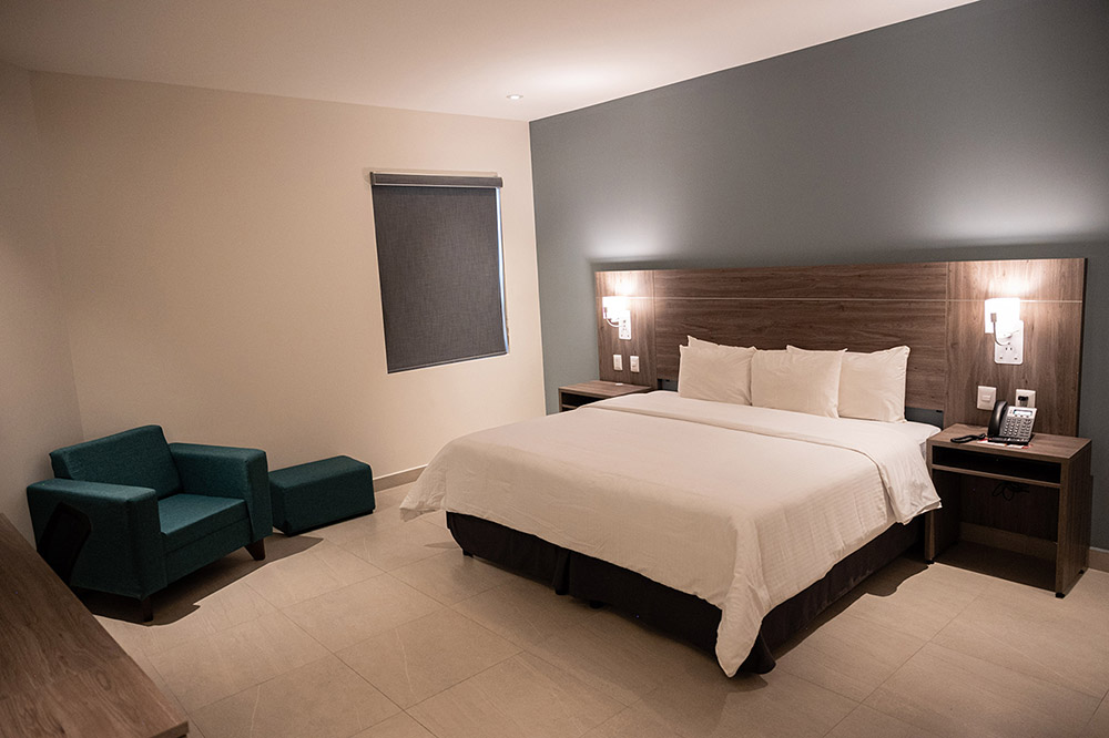 Contamos con 6 habitaciones sencillas, cada una con una cama King Size, por lo que la capacidad ideal es de dos personas. Justo lo que buscas para tu viaje de negocios o para turistear en pareja.